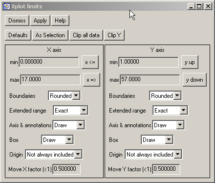 Note that Xplot rounds the limits in order to present a good looking plot. If you really want the plot in the Y interval [0,57], just set ”r;Boundaries: exact” in the Limits window.