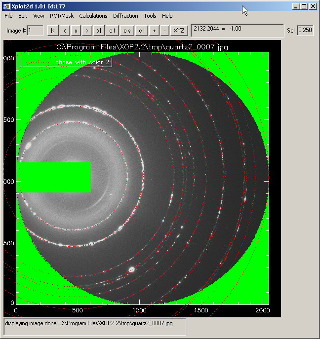 Xplot2D contains several tools for the analysis of diffraction (or small angle scattering) images. It can be x-ray, neutron or electron diffraction. In order to extract useful information from the image, we must know some parameters related to the geometry of the detector and sample position. Xplot2D permits to obtain (and refine) these parameters starting from a reference compound.