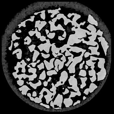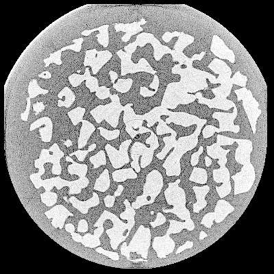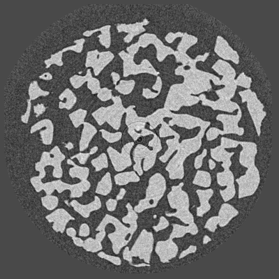 This slice contains some noise and even small rings artifacts we want to get rid of. Regularization can be helpful. TV is especially adapted for this kind of slice, since it consists in few separated phases.