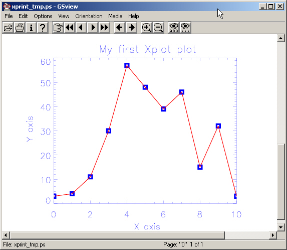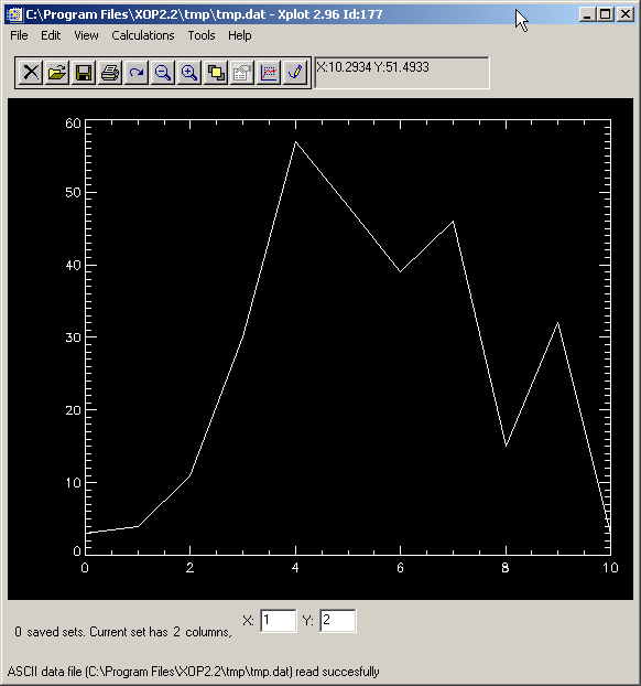 Now your can use Xplot->File->Load Data File&ldots; to get the data in Xplot. Now your Xplot window looks like this: