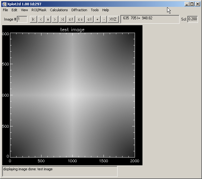 Because Xplot2d is used with large images, the image is scale to fit in the screen. The access to the scale menu is in View->Scale on Images (default 0.20). This scale is also available on the top-right angle of the main screen.